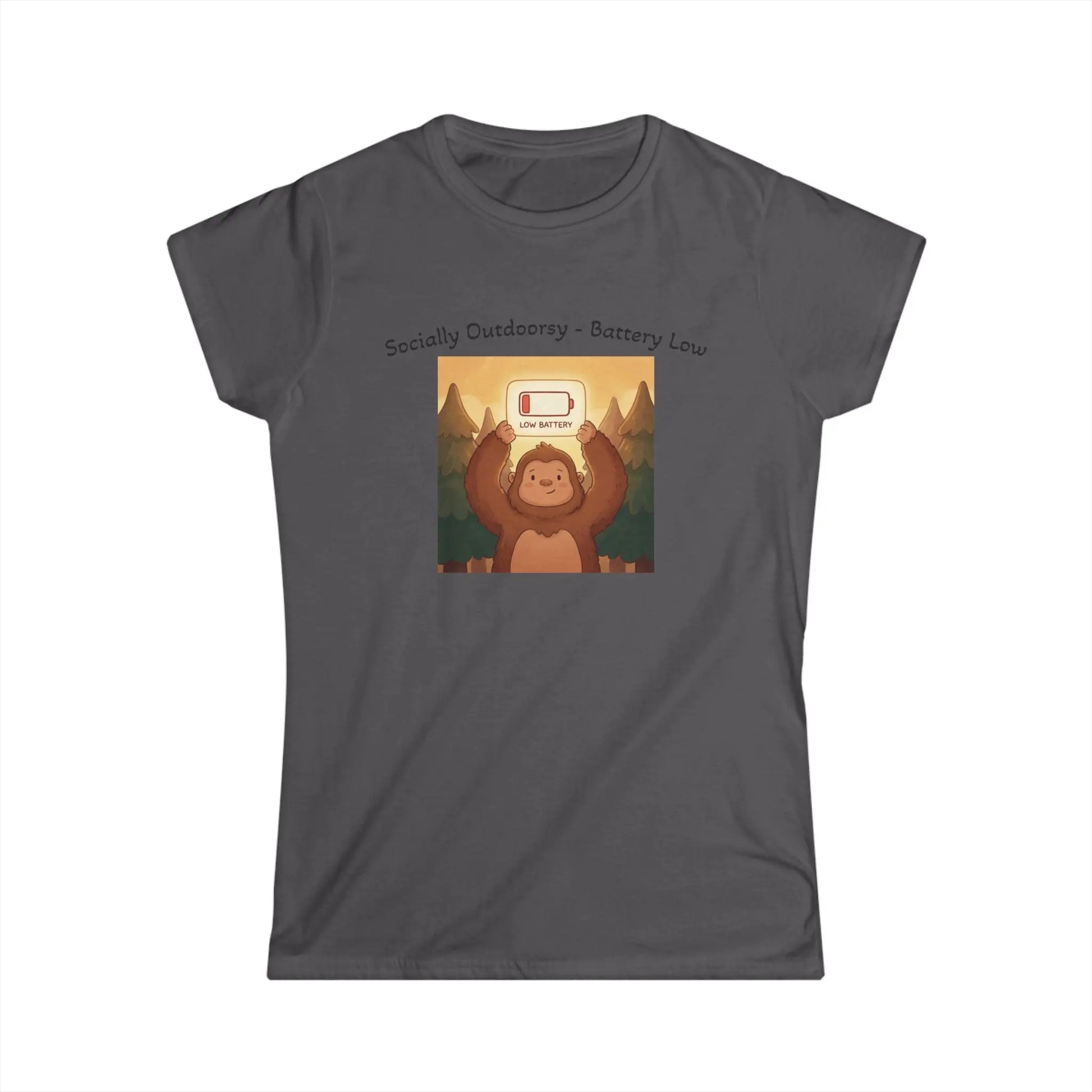 Women's Tee — 'Socially Outdoorsy, Battery Low'